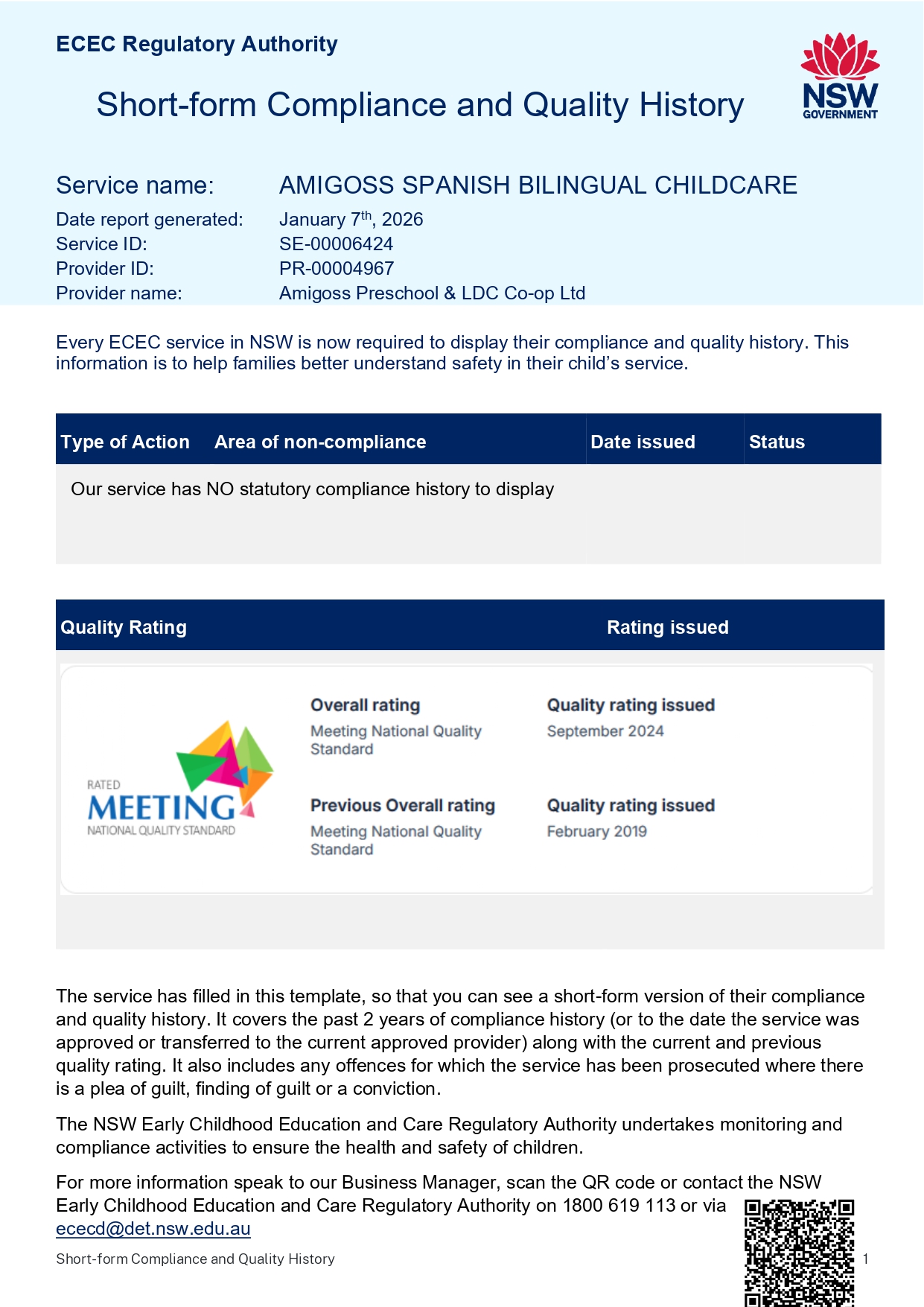 This page provides the prescribed information required under Section 172 of the Education and Care Services National Law and Regulation 173 of the Education and Care Services National Regulations. All information is made available for parents, carers, visitors and authorised officers to ensure transparency, accessibility and ongoing regulatory compliance.