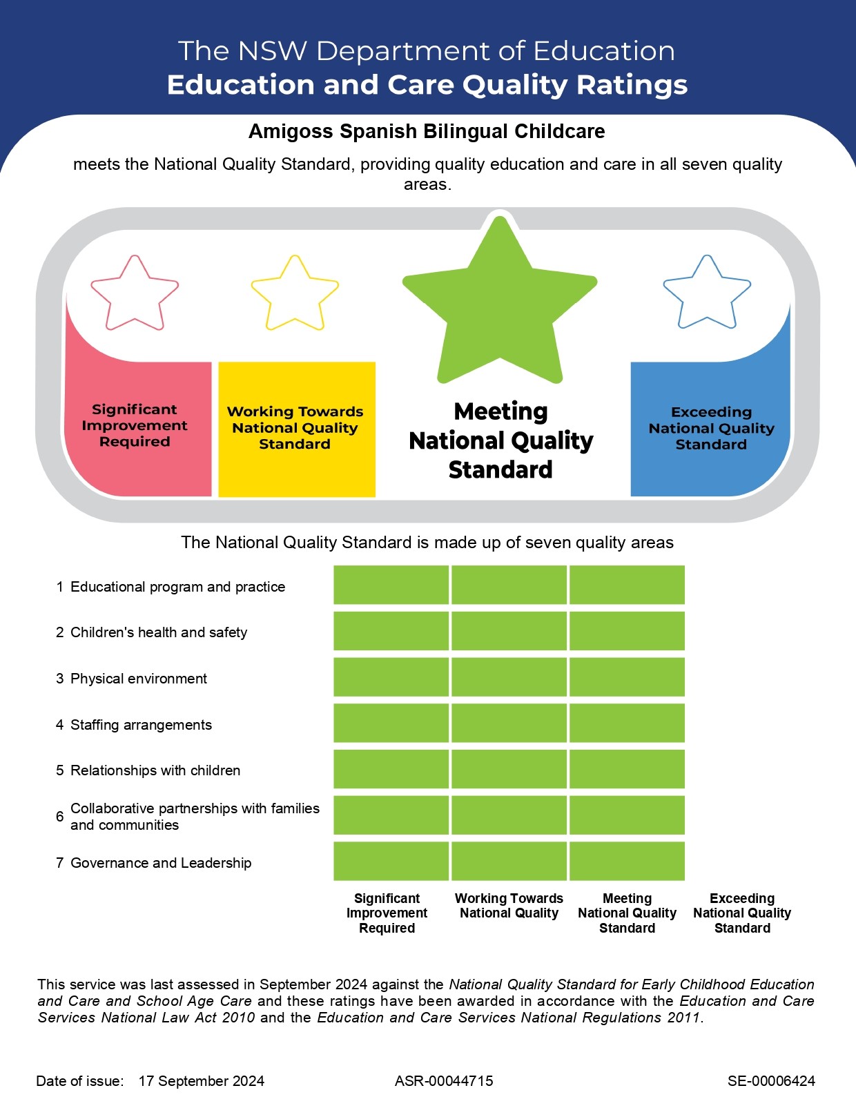 Education and Care Quality Rating